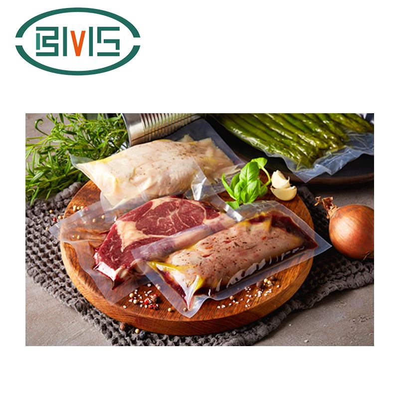 BIMASHI produce buste sottovuoto per il confezionamento di carne in Cina, offre un'ampia varietà di dimensioni con molteplici spessori. Una busta sottovuoto standard è composta da una struttura PA/PE dove PA è per la resistenza alla perforazione e PE è per la sigillatura. La categoria ad alta barriera comprende l'utilizzo di più strati focalizzati sulla prevenzione della permeabilità all'ossigeno e quindi sulla protezione della durata di conservazione.